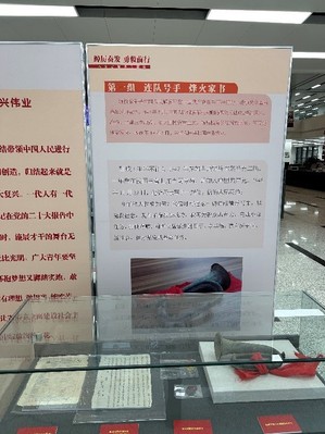 展览最后一部分介绍的是入党志愿书里的党员精神。该部分展现了不同历史阶段的革命前辈坚定入党、对党忠诚、为党奋斗的动人事迹。一份份入党志愿书,凝聚了共产党人“坚持真理、坚守理想,践行初心、担当使命,不怕牺牲、英勇斗争,对党忠诚、不负人民”的伟大建党精神。转角处,解放军连队号手旺成使用过的军号吸引了大家的注意力,它静静地躺在展柜里无声地述说着那段艰苦而又伟大的岁月。读着旺成写给母亲的信,瞻仰他获得的解放华北奖章,同学们仿佛身临其境,来到了那个战火纷飞、硝烟弥漫的年代。同学们看到,中国共产党虽然在不同历史时期面临着不同的风险挑战,但始终团结带领中国人民,以“为有牺牲多壮志,敢教日月换新天”的大无畏气概,书写了中华民族几千年历史上最恢宏的史诗。