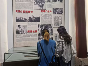 陈毅率领的新四军一支队进驻高淳的这段历史,为长期抗战并取得最后胜利奠定了基础。祠堂内一块块展板、一件件文物,真实再现了新四军浴血抗战的艰辛历程。展板前,同学们凝神驻足,不想错过任何一个历史细节。看到展柜里陈列的新四军日常生活用品,以及抗日军民使用的大刀、长矛、机枪和缴获的敌军装备等,同学们不禁联想到新四军军歌描述的“千百次抗争,风雪饥寒;千万里转战,穷山野营”战争场景。参观之余,许多同学还积极查阅相关资料,以加深对那段历史的认识。同学们了解到,新四军革命先烈面对极其恶劣艰苦的抗战环境,在生死存亡关头,始终对党忠诚、百折不挠、英勇无畏。同学们也认识到,党的坚强领导是新四军在斗争中不断发展壮大的根本原因。