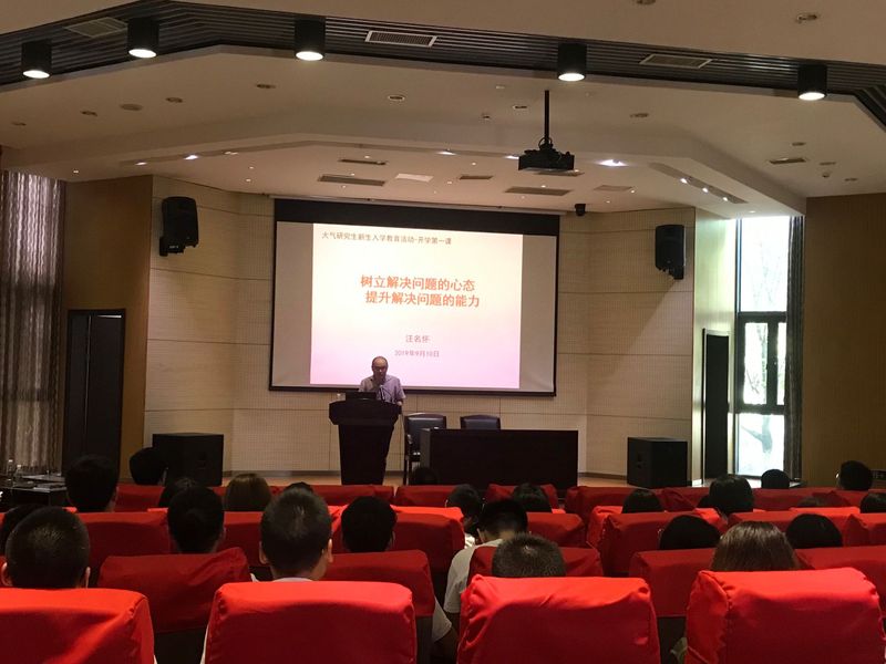 随后,汪名怀教授结合自身指导研究生的经验,跟全体新生们分享了题为《树立解决问题的心态,提升解决问题的能力》的讲座,从研究生的心态、学习、科研、交流等多方面提出了见解和建议。汪老师生动活泼的演讲形式和丰富多彩的PPT内容,,频频引来同学们的笑声和赞同,让大家在轻松愉快的氛围中,对研究生生活有了更深刻的理解和认识。