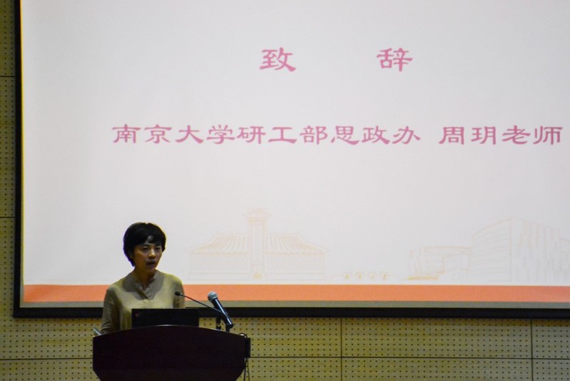 接下来,公司党委研工部思政办周玥老师向同学们介绍了研究生院的部门设置和办公地点,并在讲话中强调了研究生应有的爱国情怀,同时也指出了研究生遵守学术道德规范的重要性,希望同学们崇尚严谨求实的学风,勇于探索创新,维护学术诚信。