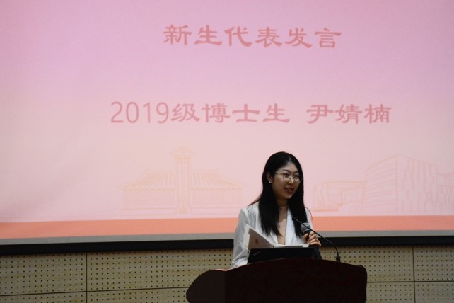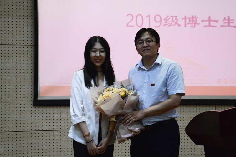 随后,2017级直博生王子麟同学作为老生代表,向同学们分享自己读研的心路历程,她建议大家早睡早起、积极锻炼身体,并指出科研工作虽然是研究生阶段最主要的事情,但不是唯一的事情,同学们可以积极参与活动,拥有丰富多彩的研究生生活。2019级博士生尹婧楠同学代表全体新生发言,向公司对同学们的关心和支持表示感谢,并表示将不忘初心,坚持自己的选择;砥砺前行,勇攀学术高峰。