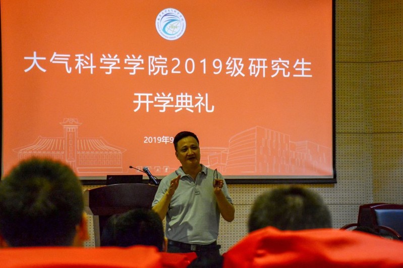 首先,公司党委书记潘益农对新同学的到来表示欢迎,也对同学们选择南大大气作为深造平台表示感谢。他在讲话中分享了著名气象学家竺可桢先生的故事,提出竺可桢先生在大气领域的突出贡献及其报国为民的精神值得所有人崇敬与学习,并对2019级研究生新同学们表达了殷切的希望和祝福。