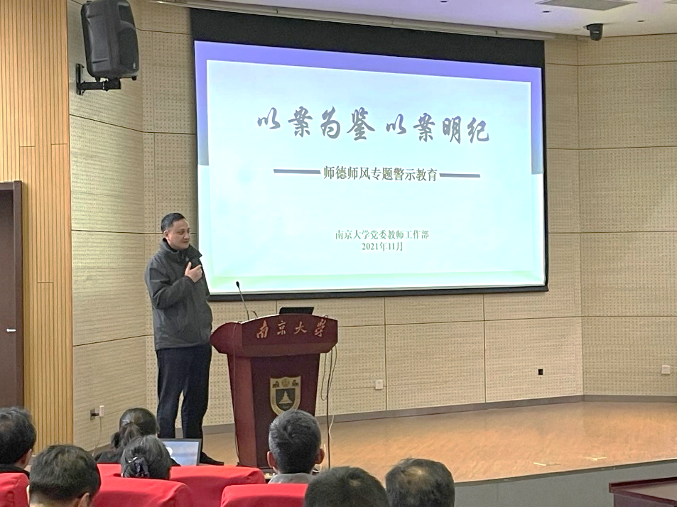 会上,潘益农同志再次为全体教职工详细解读了《教育部关于建立健全高校师德建设长效机制的意见》和《新时代高校教师职业行为十项准则》,强调了新时代高校教师职业行为规范,并结合教育部已经查处的29起违反教师十项行为准则典型负面案例,对师德失范行为的处理办法进行了全面介绍。