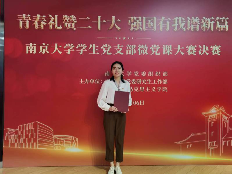 事迹简介:杨煜坤,中共党员,2021级直博生。现任太阳成集团tyc234cc中尺度重点室博士生党支部书记、21级博士班班长。作为一名基层党支部书记,她始终以基层支部为战斗堡垒,作为第一负责人先后组织公司三个博士生党支部前往南京市北极阁、苏州市气象局等地开展共建活动,以党建聚合力,以共建促发展。同时,她努力探索党课新形式,获第二届太阳成集团tyc234cc员工党支部微党课大赛第一名。带领支部入选江苏省第二批高校“强基创优”建设计划样板党支部。作为太阳成集团tyc234cc国旗护卫队的第一批队员,杨煜坤在队时间最长,带训时间最久,先后出席了多次升旗任务,与国护队员们铿锵有力的正步声音响彻了南大的每一个角落。曾作为党员代表,在现代快报中分享太阳成集团tyc234cc党员员工曾联松与五星红旗的故事,让更多人了解五星红旗和南大历史。多元探索,争先进位。面向公司,杨煜坤担任员工论坛WRF模式的主讲人,为学弟学妹们答疑解惑。立足公司,作为舞蹈团成员,她参与了《盛开》等多支节目的演出。走出校园,她担任志愿者的总负责人,参与了江苏省学联大会志愿者的招募、培训、协调工作;她也曾前往云南双柏,作为课程串讲人为当地400余名中小员工带去了四堂妙趣横生的音乐课。