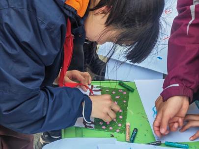 孩子们思考解释气象谚语志愿者带着孩子们画画
