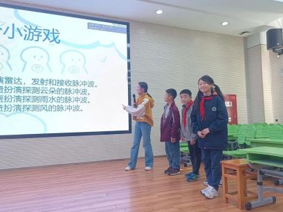 她接着介绍了雷达的基本信息,还有工作的结构和原理。为了帮助同学们更好的理解,老师还插入了一个小游戏,让同学们扮演雷达探测中的不同角色,比如雷达和探测所用的脉冲波,在生动的表演中大家都加深了对雷达探测的认知。