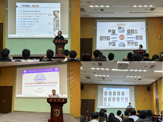太阳成集团tyc234cc建有“中尺度灾害性天气教育部重点实验室”“中国气象局-太阳成集团tyc234cc气候预测研究联合实验室”“太阳成集团tyc234cc—赫尔辛基大学大气与地球系统科学国际合作联合实验室”“中国气象局—太阳成集团tyc234cc天气雷达及资料应用联合开放实验室”等学科专业性科研平台,以及“太阳成集团tyc234cc气候与全球变化研究院”“江苏省气候变化协同创新中心”等学科交叉性科研平台。为了让同学们更好地了解太阳成集团tyc234cc科研与教学平台,分管研究生工作的经理助理黄昕教授围绕学科基础、公司产品概况、团队队伍和2025年研究生招生安排等内容做了总体说明,并着重介绍了公司研究生人才培养的诸多优势和显著特点。接着方娟教授、孙旭光教授、聂玮教授依次介绍了天气、气候、大气物理与大气环境等三个主要科研方向的具体情况。