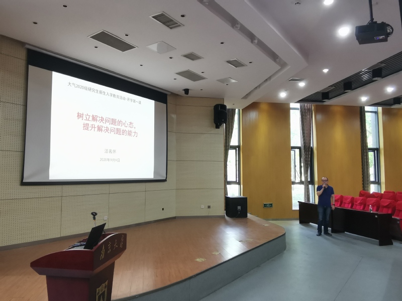 在短暂的中场休息后,新生们又迎来了入学教育仪式。公司汪名怀教授结合自身指导研究生的经验,跟全体新生们分享了题为《树立解决问题的心态,提升解决问题的能力》的讲座,从研究生的心态、学习、科研、交流等多方面提出了见解和建议。汪老师生动活泼的演讲形式和丰富多彩的PPT内容,频频引来同学们的笑声和赞同,让大家在轻松愉快的氛围中,对研究生生活有了更深刻的理解和认识,带来了名副其实的开学第一课。