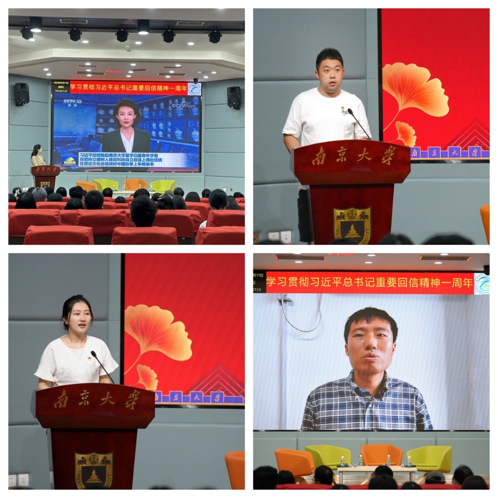 接下来,大家观看新闻视频重温习近平总书记重要回信,重新感受令人激动难忘的百廿时刻。三位博士生代表卞谷峰、李闰秋、王劲博结合自身经历,分别从“交流访学的憧憬和展望”、“公派留学所见所闻所感”、“世界气象组织实习经历”交流了自己对学习习近平总书记重要回信精神的理解与感悟,充分展现了博士生的精神风貌和人生追求。