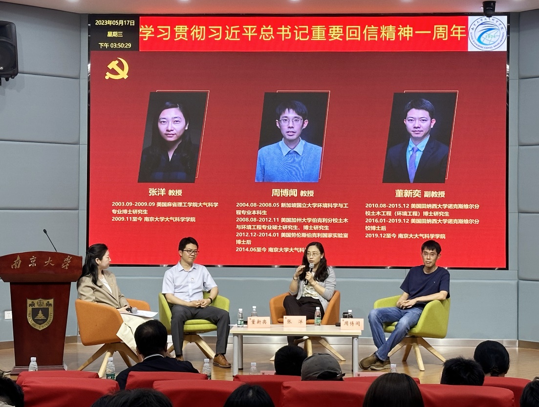 张洋老师在公司本科毕业后前往美国麻省理工公司,学习大气科学领域国际顶尖科学知识和研究技术。博士毕业后,因为对祖国和南大的热爱她选择回母校任教,她希望能在母校实现科学报国和教书育人的人生梦想。如今,通过几代大气人的共同努力,国内的科研水平已经能与国际水平比肩。她鼓励同学们珍惜现在这个好时代和好时机,努力学习认真科研,走出去多交流多展示,提升科研成果的国际影响力,推动中国的大气科学研究走在世界前沿。