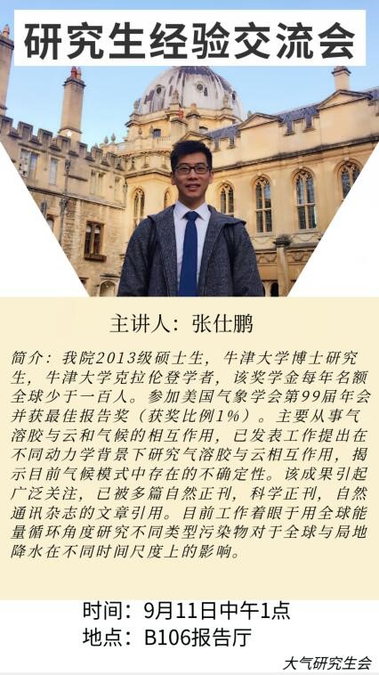 9月11日下午,公司2013级硕士生、牛津大学在读博士生张仕鹏同学受邀返校和学弟学妹进行了一场经验交流分享会。
