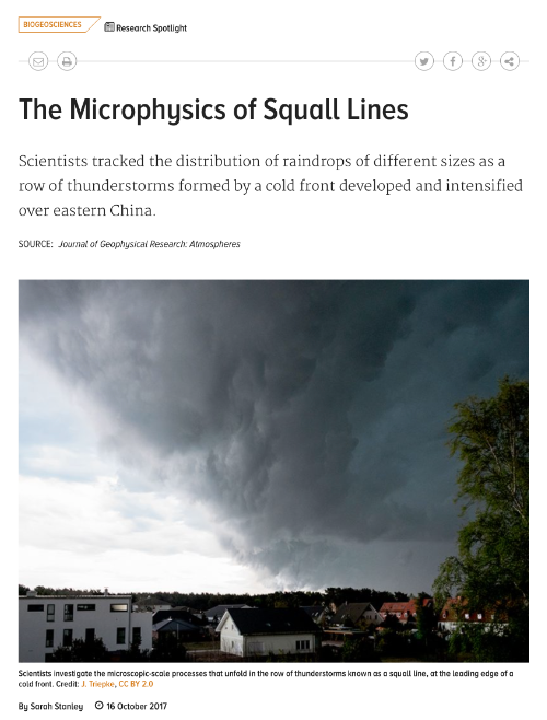 2、Stanley, S. (2017), The microphysics of squall lines, Eos, 98, https://doi.org/10.1029/2017EO082537.Published on 16 October 2017.