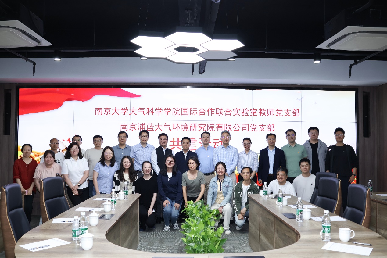 在南京浦蓝大气环境研究院有限公司,双方党支部开展支部共建活动,教育部国际合作联合实验室教师党支部书记聂玮与南京浦蓝大气环境研究院有限公司党支部书记郑龙飞分别介绍支部建设情况,双方表示,将以支部共建为契机,坚持党建引领,推进党建与业务相融合,围绕党的建设、人才培养、科研合作、科技创新、成果转化以及员工就业实习等加强交流合作,努力实现高质量党建引领高质量发展。