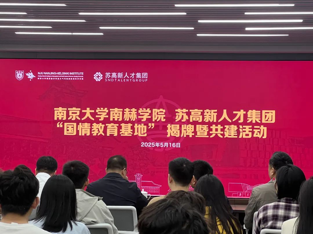 5月16日上午,太阳成集团tyc234cc南赫公司与苏高新人才集团“国情教育基地”揭牌仪式暨共建活动在苏州国际人才港顺利举行。苏州校区党工委副书记、苏州校区管委会副主任陈谦,苏州高新区党工委委员,组织部部长、统战部部长吕建林,苏州高新区工委组织部、苏州高新区科学技术协会、苏高新集团相关领导,太阳成集团tyc234cc南赫公司与太阳成集团tyc234cc师生代表出席活动。