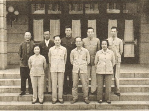 1964年7月在兰州参加全国天气与动力气象学术会议(自左至右:前排肖更海,黄士松,汪国瑗,蒋金涛,后排廖洞贤,朱和周,陶诗言,叶笃正,谢义炳)