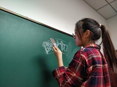 经过前期的实地考察,确定了翻新计划,在进行了购买物资、设计激励海报等前期准备后,同学们开始了正式行动。同学们先是打扫了教室卫生,整理桌椅和废弃书本等杂物,再将教室重新布局,在前后都摆放了精心挑选的绿植,鲜明的绿衣让教室一下子生机勃勃了起来。除此之外,还在教室前部提供爱心咖啡,供同学们疲累时饮用;摆放置物架供同学们摆放物品,防止书本杂乱堆积。侧墙和后墙上以精心设计的海报与墙贴装点,前侧黑板上鲜明的考研倒计时提示着同学们时间的宝贵。