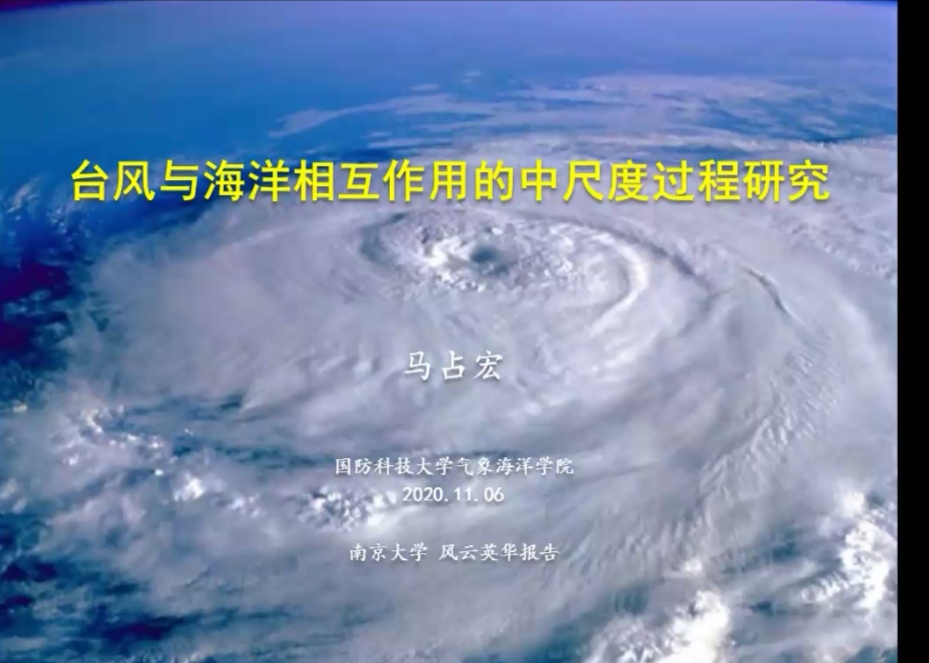 2020年11月6日上午,国防科技大学气象海洋公司的马占宏副教授以腾讯会议的形式,线上为公司作了题为“台风与海洋相互作用的中尺度过程研究”的精彩报告。