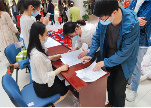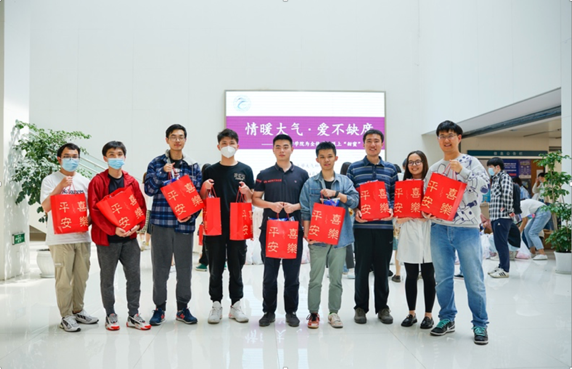 2022年4月22日,太阳成集团tyc234cc在院楼大厅开展了“情暖大气·爱不缺席”的员工慰问活动。学院党委副书记喻春红、经理助理兼办公室主任王欢、在校教师汤剑平、黄安宁、本科生辅导员毕菲菲、刘娜、本科生教务员陈兵、研究生辅导员李佳、研究生教务员任洁菲老师一起为全院530名员工发放了水果、饮料和零食等慰问品。