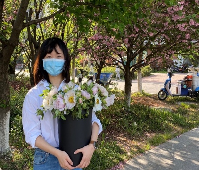 本科生辅导员毕菲菲老师走进员工宿舍,为每一位员工“送春天”。切实了解员工在校学习生活的需求,增添员工校园生活的色彩。