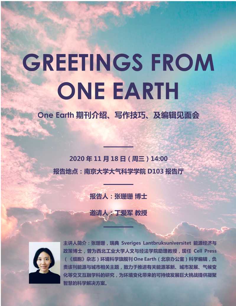 【学术报告】张珊珊博士:One Earth 期刊介绍、写作技巧、及编辑见面会