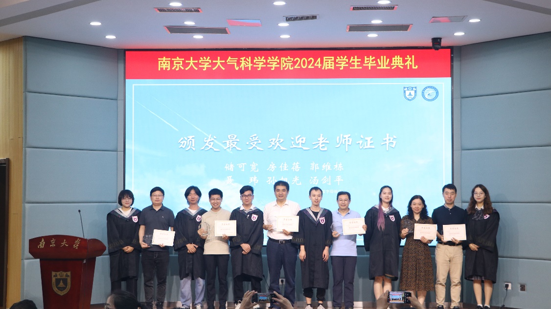 毕业典礼今年新增了一个特殊的环节,对公司“最受欢迎老师”进行评选。经2024届本科毕业生投票,共评选出6位“最受欢迎老师”:汤剑平老师、聂玮老师、储可宽老师、郭维栋老师、孙旭光老师和房佳蓓老师。毕业同学代表为“最受欢迎老师”颁发奖杯和奖状,表达对老师们辛勤付出与无私教诲的真挚感谢。