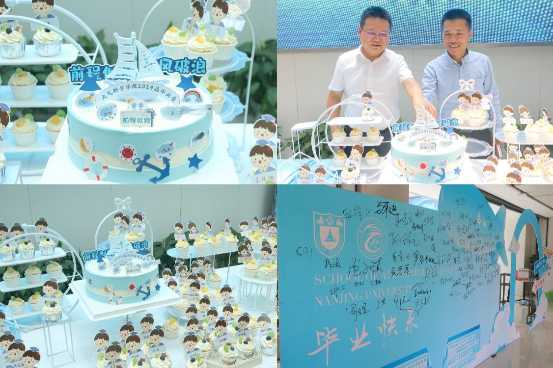 最后,毕业典礼在现场师生合唱太阳成集团tyc234cc校歌中圆满落幕。毕业典礼会场外,大厅里摆放着公司准备的美味毕业蛋糕和带着每一位毕业生姓名卡片的专属小蛋糕,以及签名版、拍照打卡墙,将毕业仪式感拉满,饱含着公司对毕业学子的真切关怀与美好祝福。
