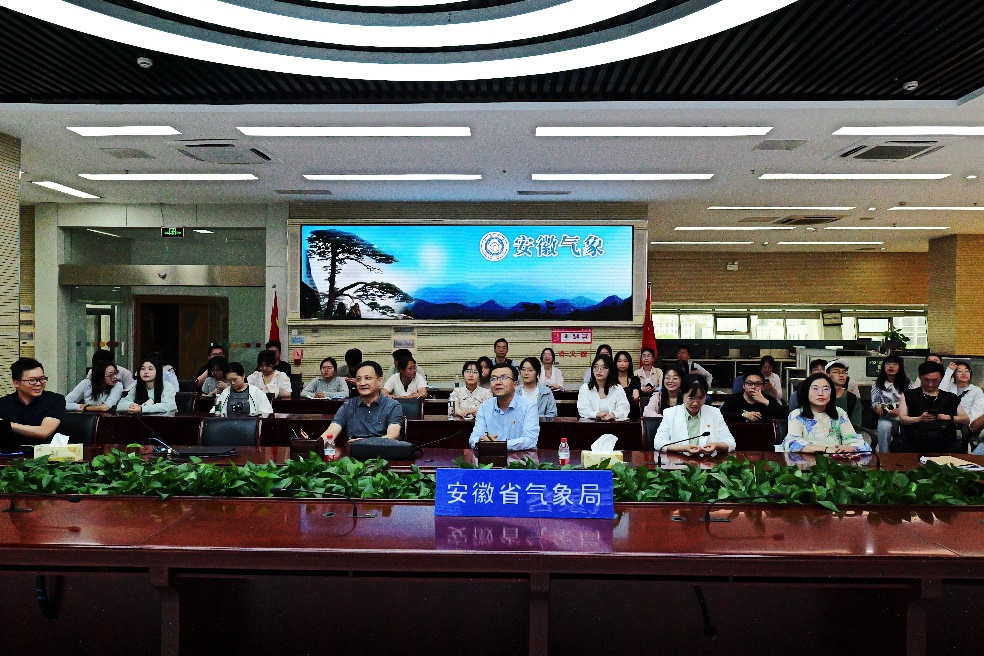 下午,党员师生来到安徽省气象局,参观了气象台、农网中心等部门,了解不同部门的业务工作,拓宽了气象服务视野,学习了一线气象工作者的为民情怀和服务精神。为加深了解与沟通,双方开展了进一步交流座谈。安徽省气象局党组成员、副局长王兴同志及相关处室负责同志出席座谈,会议由安徽省气象局人事处处长张晓红同志主持。