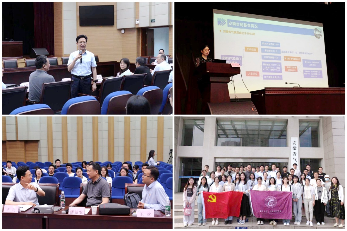 王兴局长代表安徽省气象局表达了欢迎,介绍了安徽省近年来的飞速发展进程和重大成就,表达了对南大学子投身安徽省高质量建设的殷切希望。张晓红处长介绍了安徽省气象局的基本情况与人才队伍建设特色工作,鼓励南大学子毕业后到业务部门建功立业。双方一同回顾了局校合作悠久历史,并就党建联创、人才培养、科研合作等达成了进一步合作意向。