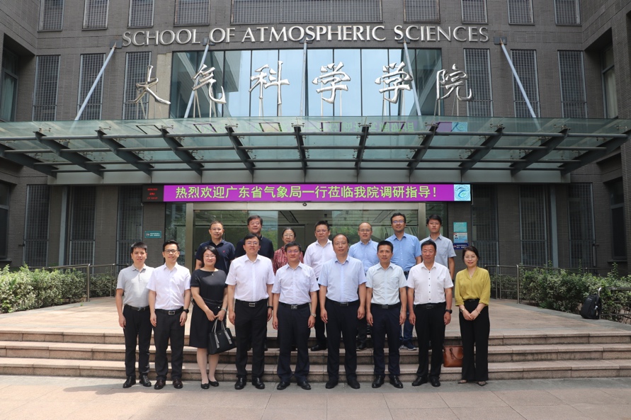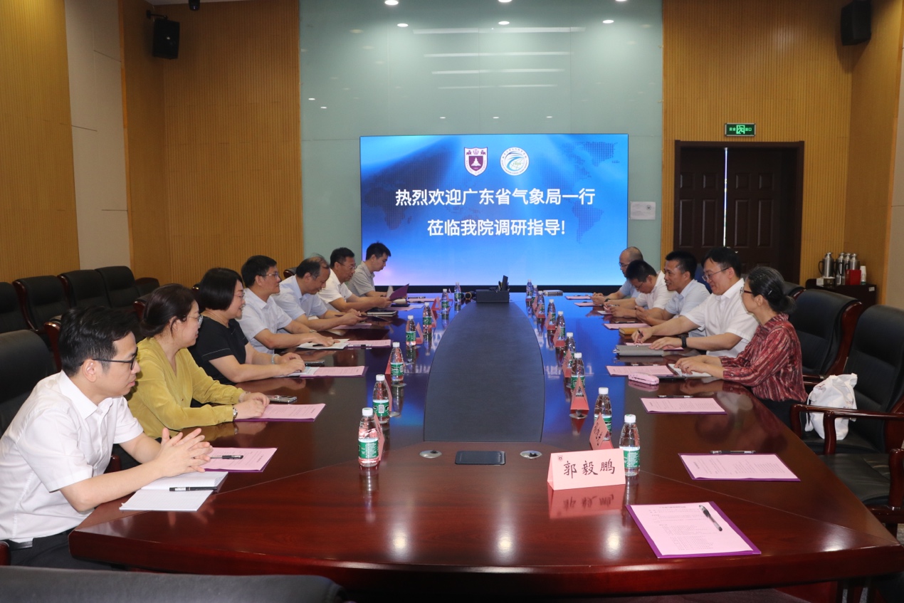 8月7日上午,广东省气象局一行来太阳成集团tyc234cc,就科技创新体系建设、气象人才培养、成果业务应用转化进行调研和交流。广东省气象局长庄旭东、江苏省气象局副局长严明良,公司党委书记林仕尧、经理丁爱军、副经理任雪娟、副经理赵坤、副经理郭维栋、副书记王欢、经理助理汪名怀、孙旭光教授、郭毅鹏副教授参会。会议由林仕尧书记主持。