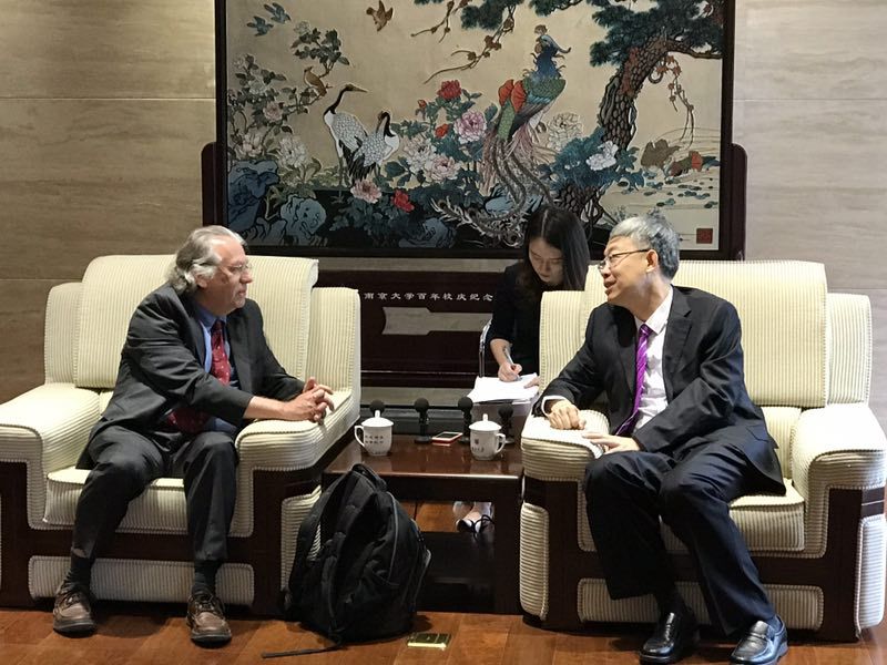 Nanjing University conferred Professor Kerry Andrew Emanuel of Massachusetts Institute of Technology (MIT) the honorary professor, and conferring ceremony and was held at Zijin Hall of Nanjing University International Conference Center on the morning of June 27, 2018. Before the ceremony, Professor Jian Lyu, Nanjing University president, Professor Zhemin Tan and Professor Zhenlin Wang, vice president of Nanjing University met with Dr. Kerry Andrew Emanuel and other four well-known scholars in tropical cyclone research. President Jian Lyu paid tribute to and welcomed them. He had high expectations and was confident for the development of cooperative relations between Nanjing University and American scholars, and hoped that SAS, Nanjing University can cooperate further on research and discipline construction with American scholars. Dr. Kerry Andrew Emanuel thanked President Jian Lyu and Nanjing University for the warm welcome and reception, and looked forward to maintaining a long-term cooperation with Nanjing University, especially in field of atmospheric dynamics with SAS.
