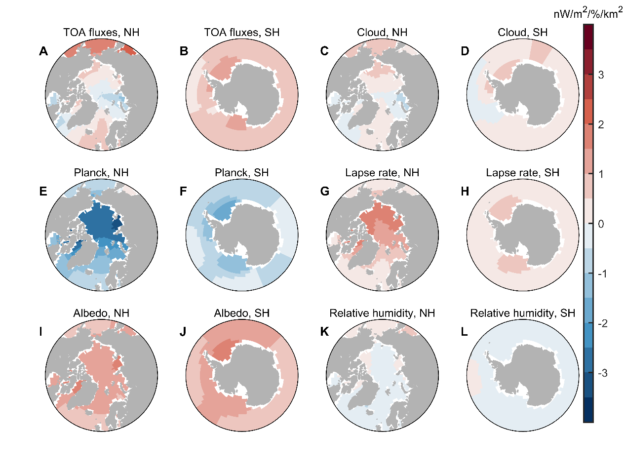 Zhou, C.*, Q. Wang, I. Tan, L. Zhang, M. D. Zelinka, M. Wang, J. Bloch-Johnson, 2025: Sea ice pattern effect on Earth's energy budget is characterized by hemispheric asymmetry, Science Advances, 11, eadr4248, DOI: 10.1126/sciadv.adr4248.