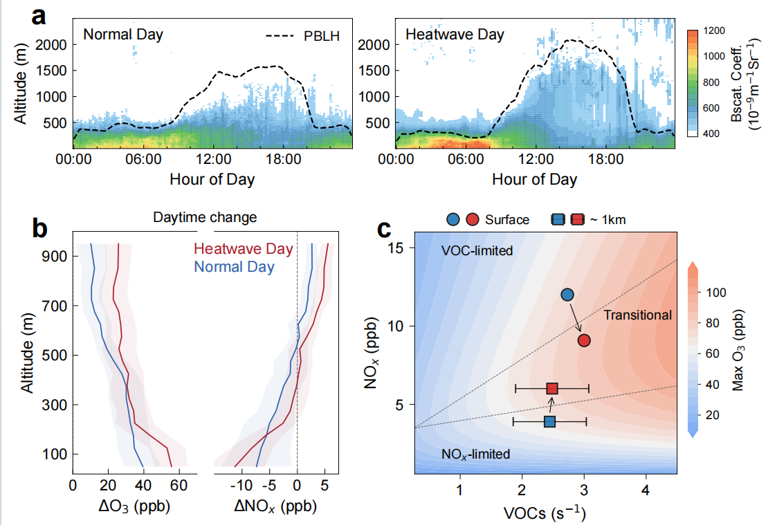 Figure 2. Responses of urban boundary layer, ozone and nitrogen oxides to heatwaves.