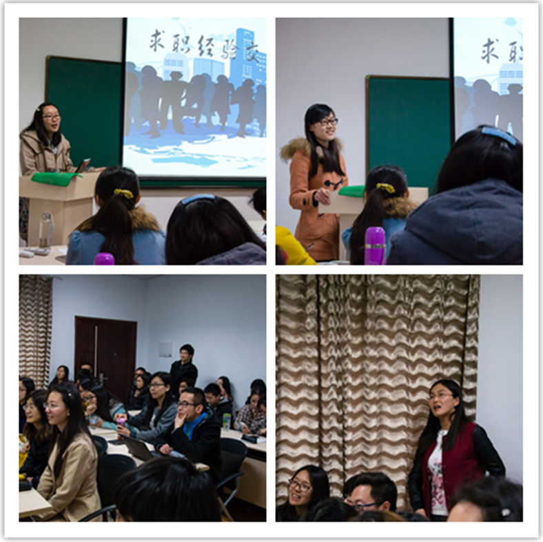 傅瑜学姐和高旭旭学姐属于签工作较早的一批,她们求职时目标非常明确,有所舍取,并且向用人单位表达非常希望留下来的愿望,最终很快地敲定了工作。学姐们告诉大家如果有心仪的单位,一定要在研二的暑假积极地实习,争取给用人单位留下良好的印象。
