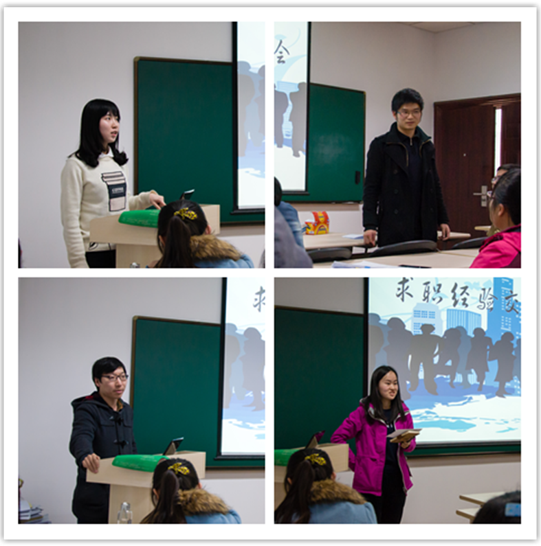 张颖学姐用自己的经历提供给学弟学妹们一些非常中肯的建议,她说从秋招时就要开始积极投递简历,及时关注求职网站,做好多手准备,不要害怕尝试,也不能只着眼于一个单位,只有多多尝试,成功的几率才会越来越高。