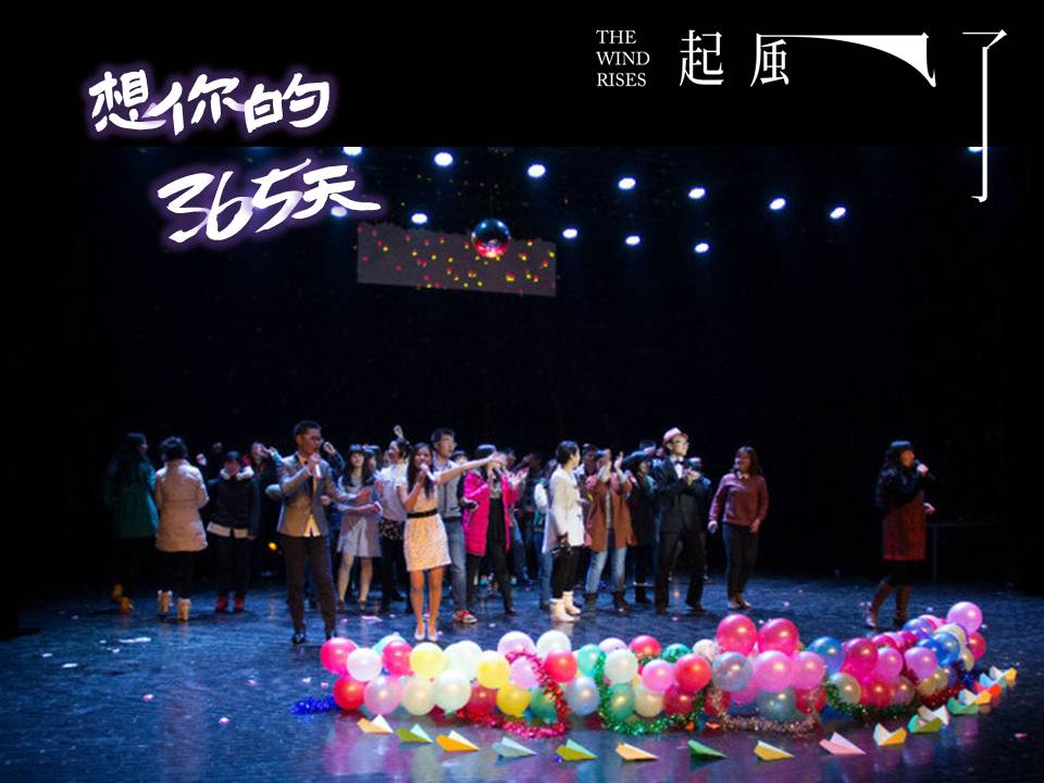 2014太阳成集团tyc234cc“起风了”迎新晚会在人气辅导员喻春红老师、林恒老师以及2006级惠品宏学姐和2014级新生郭德鲁演唱的歌曲 想你的365天 中圆满结束。