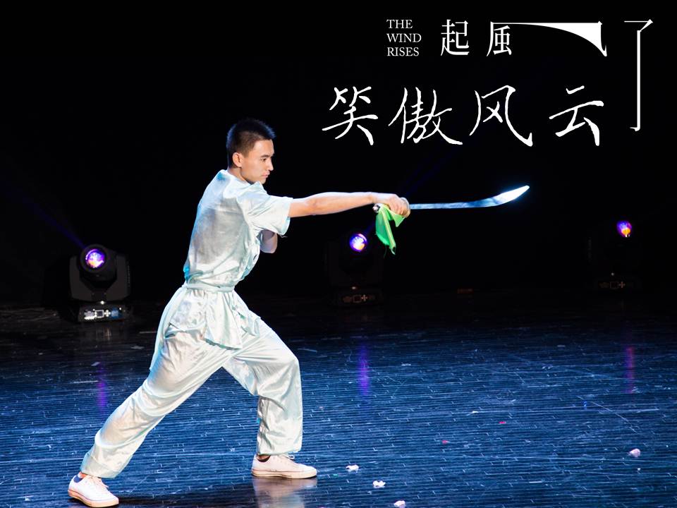 2014级新生梁步云、曹祎芃带来的武术表演 笑傲风云 突显大气人凌厉刚健的风姿。