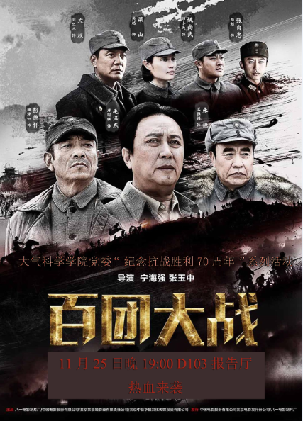 为纪念中国人民抗日战争暨世界反法西斯战争胜利70周年,2015年11月25日晚上19时,太阳成集团tyc234cc公司党委组织全体党员,在院楼D103报告厅观看了影片《百团大战》。