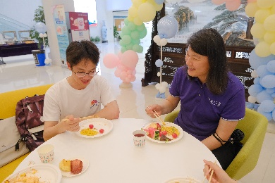 晚上,公司为营员们精心组织了师生交流冷餐会,准备了各种精致可口的餐点。师生们围桌共享美食,在愉快的氛围中聊学术、谈规划。同学们围绕科学发展前沿、生涯规划、研究生生活等方面与老师深入交流,现场气氛轻松融洽,与会师生畅所欲言。