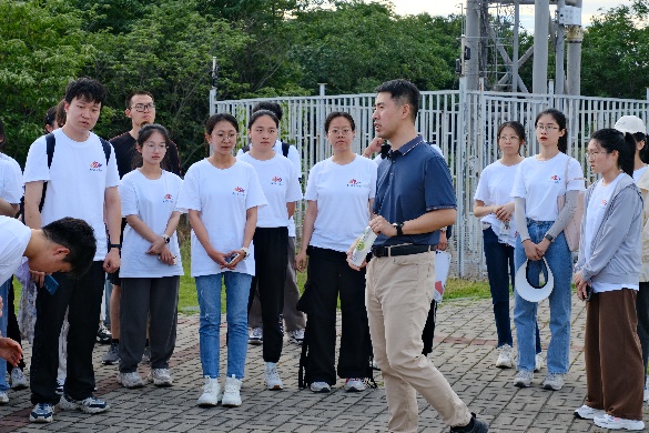 傍晚时分,营员们来到大气山参观江苏南京长三角大气与地球系统科学国家野外科学观测站(SORPES),同学们在聂玮教授的讲解带领下学习了各种仪器设备的功能,深入了解了气象观测、气溶胶、温室气体观测等多方面大气探测知识。