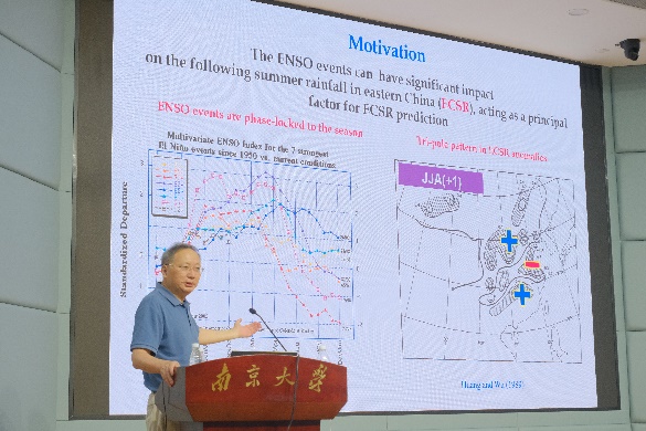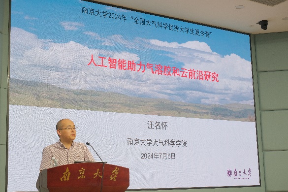 7月6日下午汪名怀教授、赵坤教授和杨修群教授分别为营员们带来了三场精彩的学术报告讲座。汪名怀教授结合前沿热点人工智能,介绍了机器学习和深度学习技术在气溶胶和云的研究中的应用,进一步展示了人工智能在大气科学领域的应用前景;赵坤教授介绍了高影响天气雷达探测技术和国内外高影响天气观测试验实例,以及中小尺度灾害性天气的演变和形成机理的相关研究;杨修群教授探讨了ENSO对次年夏季我国东部降水影响的年代际变化,介绍了产生降水年代际变化的相关机理研究。三位教授的学术报告深入浅出,营员们纷纷表示,与教授们的深入交流加深了对学科前沿动态的了解,受益匪浅。