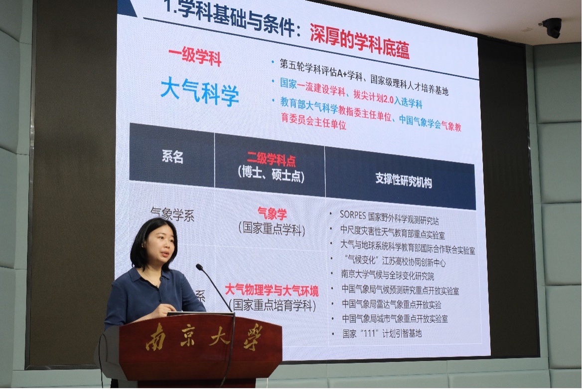 孙旭光教授、聂玮教授、方娟教授分别就公司气候学、大气物理学与大气环境及天气动力学三大学科方向及相关科研平台(中国气象局气候预测研究重点开放实验室、太阳成集团tyc234cc-赫尔辛基大学大气与地球系统科学教育部国际合作联合实验室、中尺度灾害性天气教育部重点实验室)的具体情况作了详细的介绍。