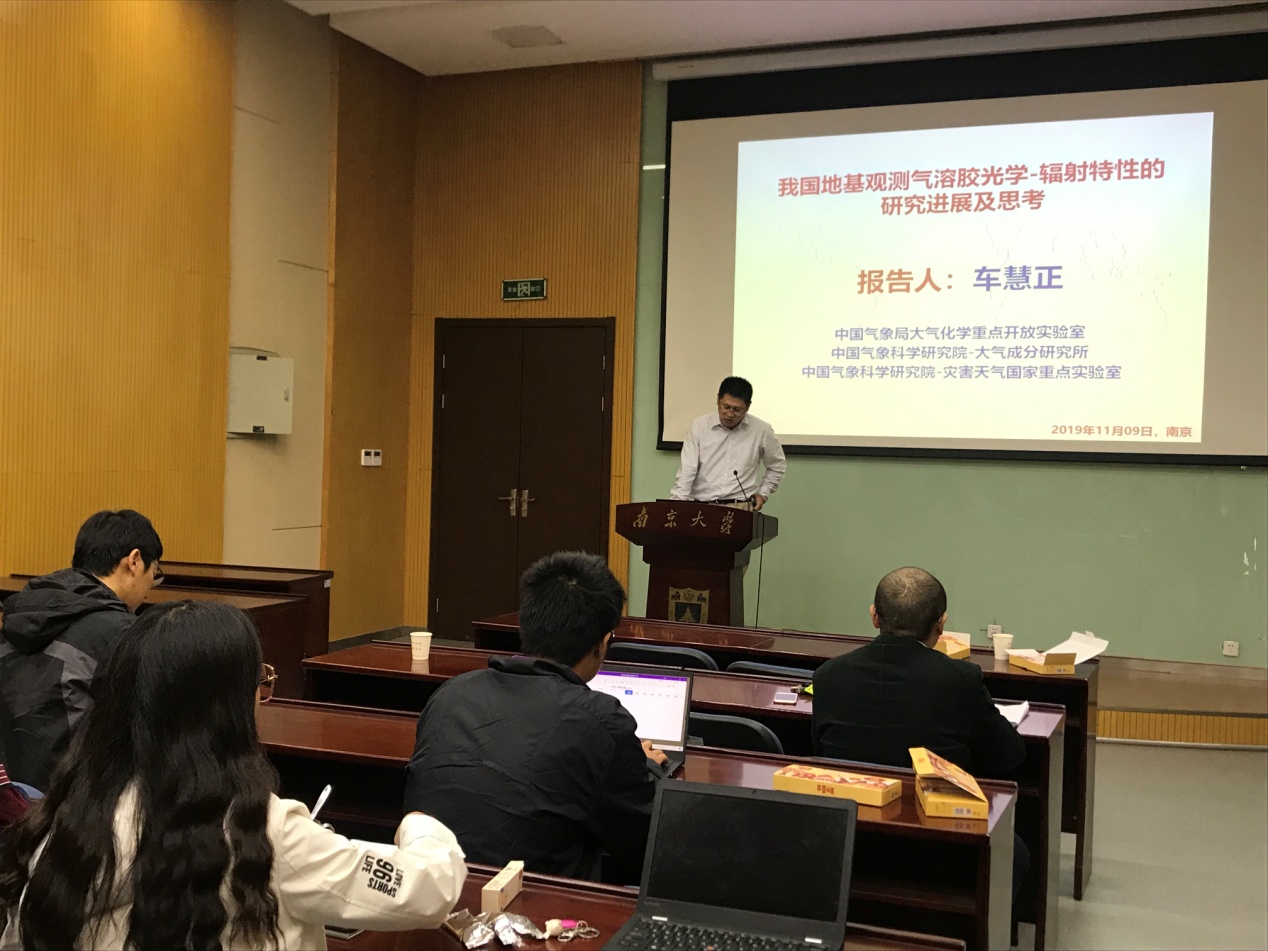2019年11月8日下午,应太阳成集团tyc234cc的邀请,中国气象科学研究院研究员、气科院大气成分研究所副所长车惠正老师访问公司,并作了题为“中国气溶胶微物理和光学特性地基网络化观测”的学术报告。