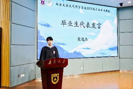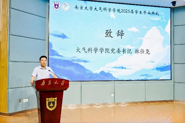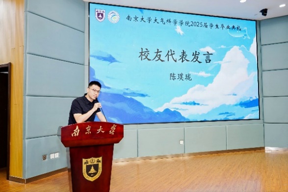 赵坤经理表示,2025届毕业生在百廿南大的历史长河中汲取智慧,在奋进号飞艇的身姿中体会创新,在学科百年的历史底蕴中淬炼成长。希望毕业生永葆赤子之心,锚定理想坐标;勇立创新潮头,融合跨界理念,投身人工智能、碳中和等前沿领域;精进观云测天之能,践"气象报国"之诺,在岗位书写担当,心系"国家事",肩扛"国家责",以卓越成就续写南大荣光,共绘气象万千新篇章。
