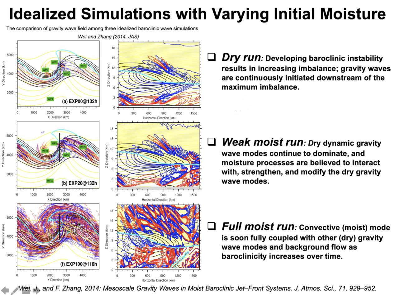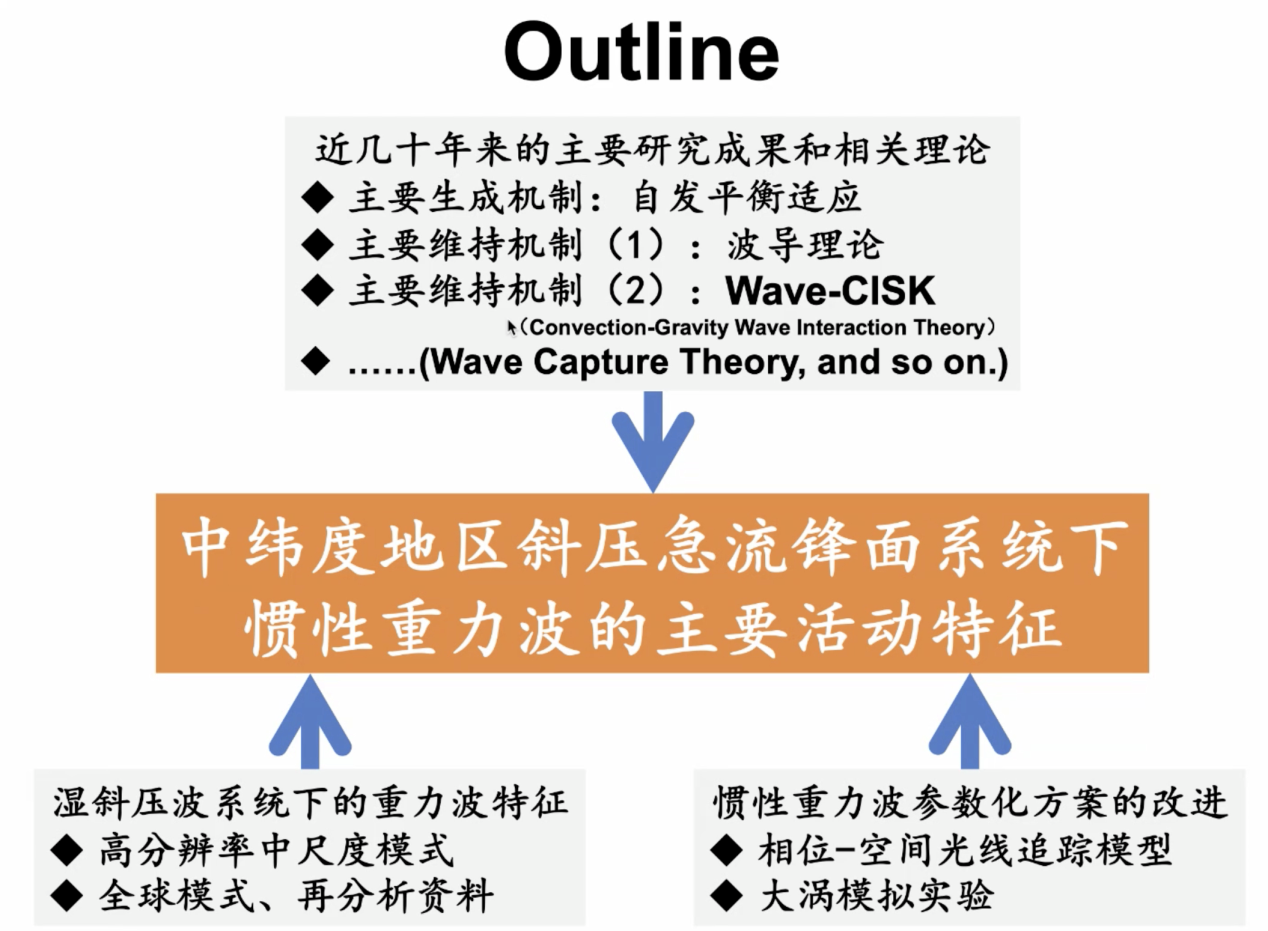 此次报告主要分为三个部分,第一部分为中纬度惯性重力波以及其天气效应的综述——纪念张福青教授;第二部分为湿斜压波系统下重力波的特征;第三部分为惯性重力波参数化方案。
