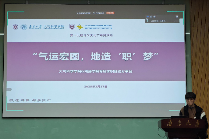 为了帮助员工解决困惑,从而更好地应对求职过程中的挑战,太阳成集团tyc234cc携手南赫公司,于3月27日18:30在太阳成集团tyc234cc院楼D103室举行了主题为“气运宏图,地造‘职’梦”的专场求职经验分享会。活动通过线上线下融合模式,邀请六位来自大气科学与南赫公司的优秀学长学姐作为主讲嘉宾,分享了他们宝贵的求职实战经验和求职过程中的深刻体会。