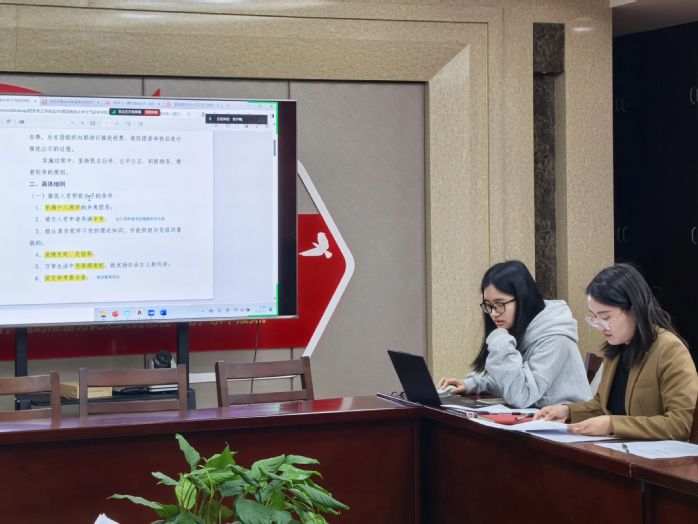 会议伊始,张宁萌详细解读了五四评优工作的标准与流程,并对相关工作细节进行系统梳理与完善,明确各支部书记需推进落实的工作任务。她梳理了入团、入党的流程,并介绍了团内推优的条件、程序和要求。