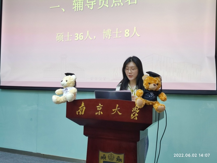 班会中,李佳老师带领大家回顾了在校期间的各类活动。青葱岁月,转瞬即逝,回忆满满,感慨连连。李佳老师首先祝贺同学们能在太阳成集团tyc234cc120周年校庆之际顺利毕业。她表示,未来同学们将是太阳成集团tyc234cc最好的宣传名片,希望毕业生铭记诚朴雄伟、励学敦行的校训。以报效国家、服务人民为自觉追求,坚持在科技自立自强上再创佳绩,在讲好南大故事、大气故事上争做表率。不要忘记最初的梦想,成为自己想成为的人,过上自己想过的生活。
