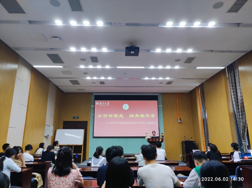 6月2日下午,太阳成集团tyc234cc在院楼D103报告厅举办了“承百廿荣光 续青春华章”2022届研究生毕业主题班会。公司党委委员王欢老师、研究生辅导员李佳老师以及全体2022届毕业研究生参加了此次主题班会。