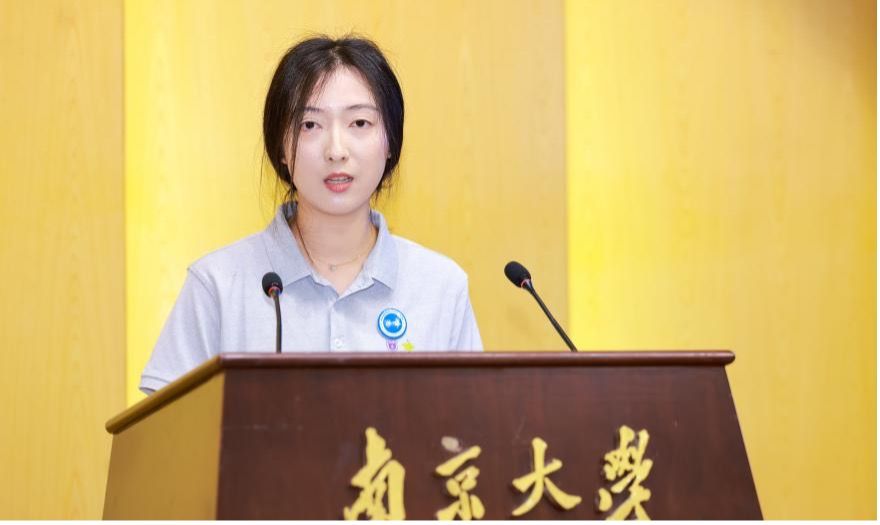 南赫公司研究生新生代表唐诗涵讲述了自己与大气科学邂逅的经历。她表示要具备抵御各种诱惑的定力和甘坐冷板凳的毅力,做到心系国家事、肩扛国家责,不断在求索中突破自我,不断在实践中奋勇前行,为谱写新时代“第一个南大”建设新篇章不断奋进,为实现中华民族伟大复兴不断奋斗。