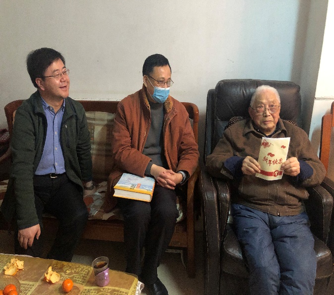 为弘扬尊老敬老的中华民族传统美德,切实贯彻全心全意为人民服务的宗旨,充分彰显公司党委对退休老师和退休老党员的真情关怀,在新春佳节来临之际,公司党委书记潘益农同志,副经理郭维栋同志,经理助理、办公室主任王欢同志,退休工作秘书潘姝一行于2021年1月25日寒假第一天走访慰问了公司7位退休教职工,为他们送上慰问金,表达了公司对退休老师们新春的问候和美好的祝愿。